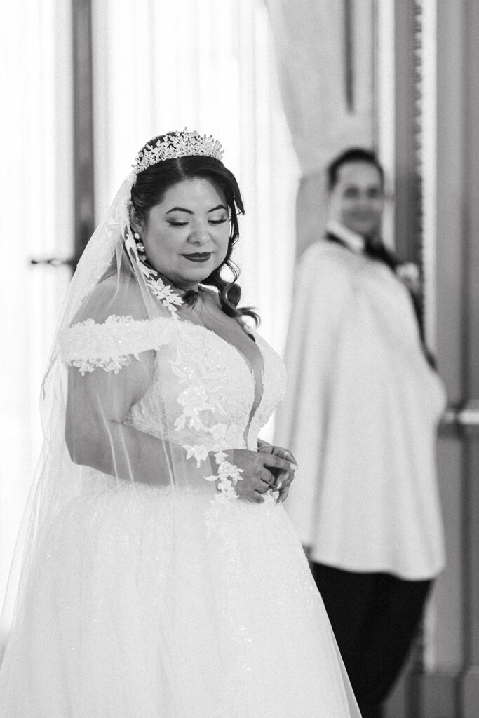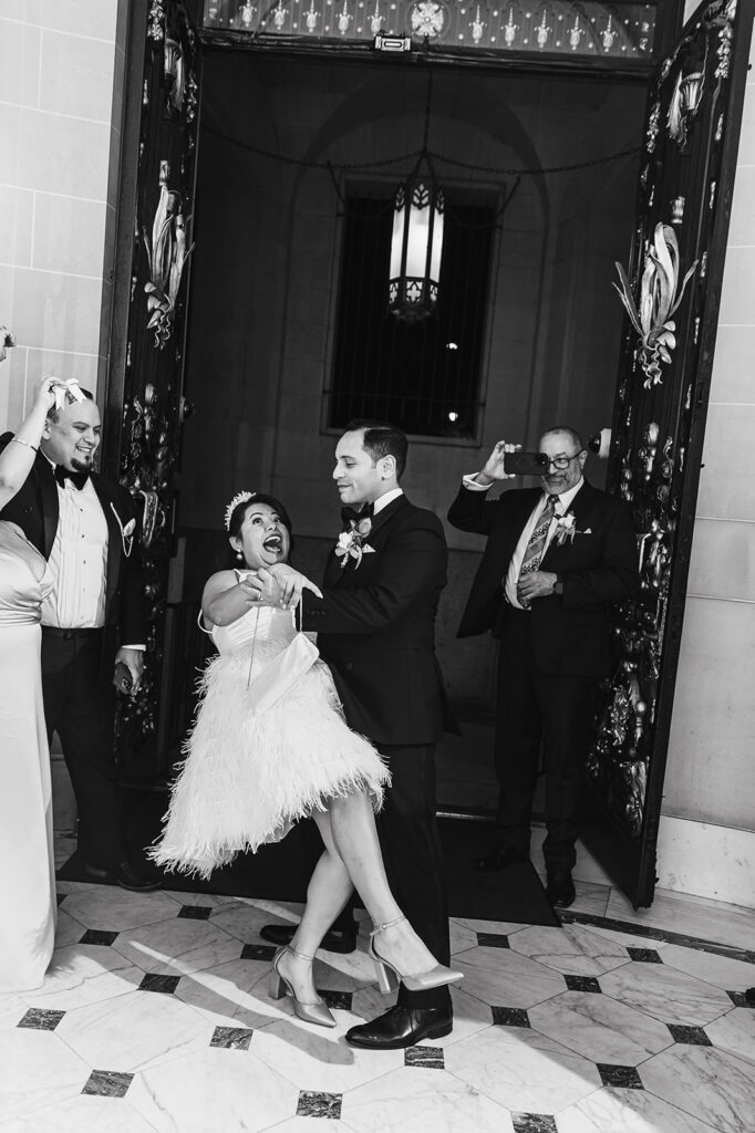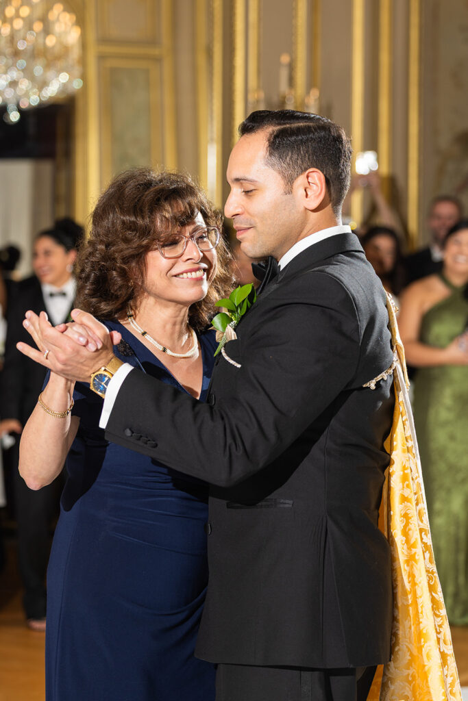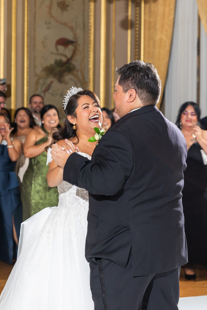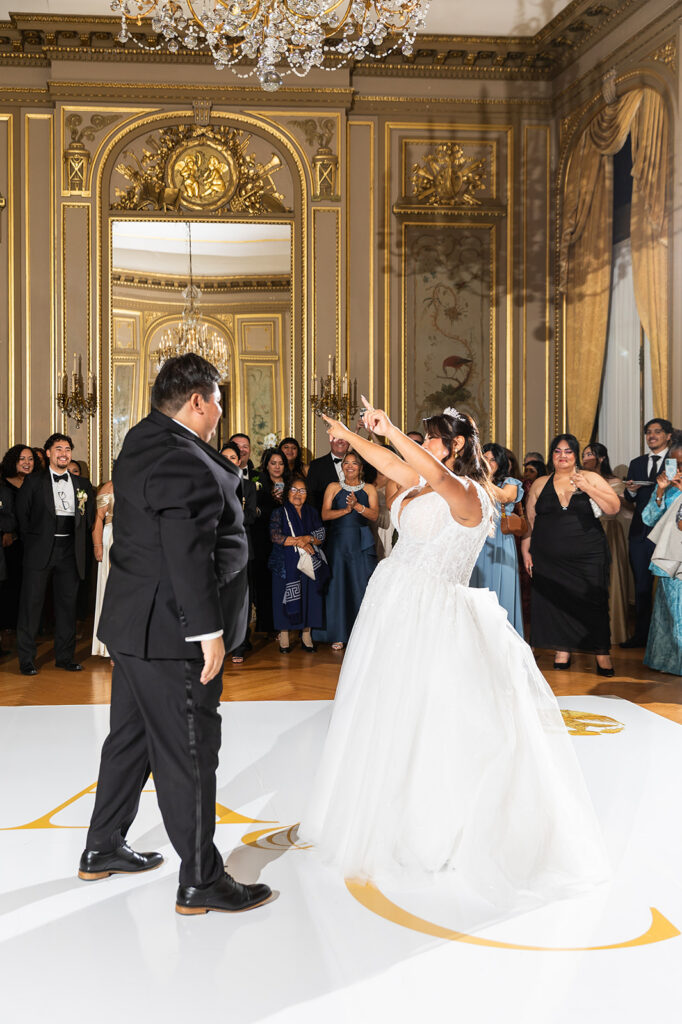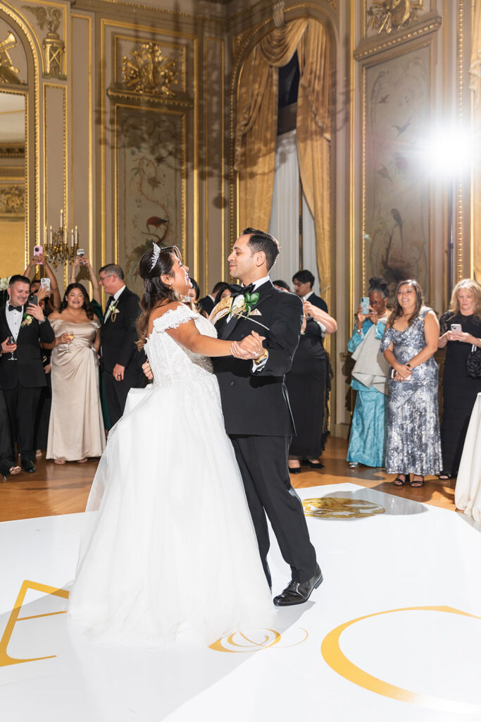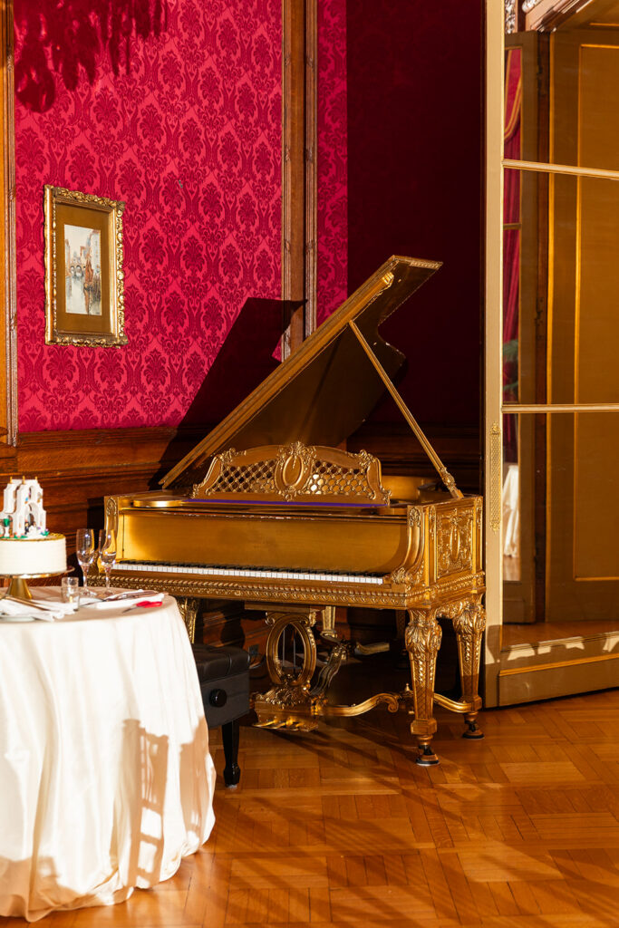 Clad in beautiful satin champaign and classic black, the wedding party arrived in style! The colors Abi and Christian chose paired beautifully with the gilded aesthetic of the Perry Belmont House. Instead of contrasting with pops of color, they chose to accentuate the existing beauty.